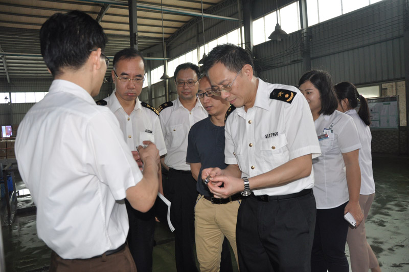 隨后,廣州海關周關長 、佛山海關駐三水辦龔關長和經促局梁局長與公司領導等一行先后參觀了公司生產一線,沖壓車間、磨口車間。海關等領導表示,本司在小五金行業內一直以來堅持匠心精神,對產品的制造工藝和質量嚴格把控給予肯定與贊賞,并且今后會一如既往地更加關心、支持企業,促進企業更好地發展。